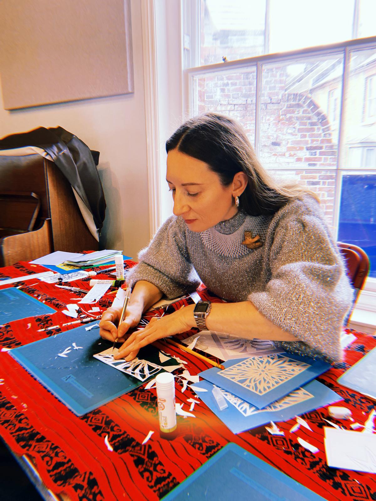 The enchanting artist Olesya Seregina – who travelled to Canterbury for three hours through train cancellations, but it wasn’t in vain! She gave everyone the opportunity to experience real magic and become a wizard, transforming ordinary paper into the delicate lacework of vytynanky. We very much hope to see Olesya again, as not everyone who wanted to managed to take part!